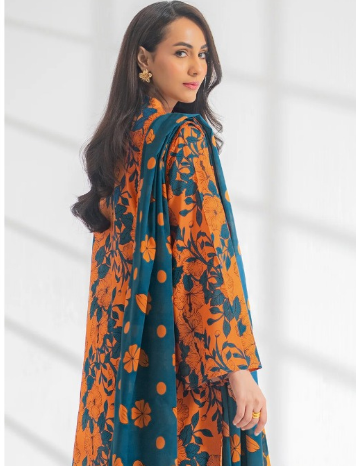 EGO LAWN 3 PC- DIGITAL PRINT LAWN SHIRT WITH SAME TROUSER & DIGITAL PRINT VOILE DUPATTA.(LC-1086)