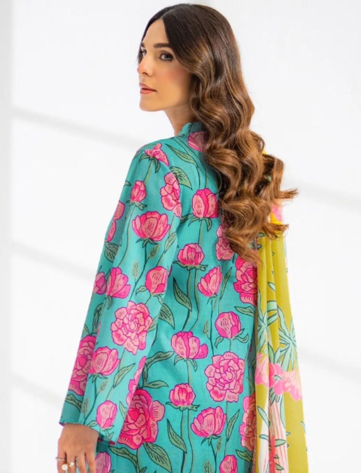 EGO LAWN 3 PC- DIGITAL PRINT LAWN SHIRT WITH SAME TROUSER & DIGITAL PRINT VOILE DUPATTA.(LC-1087)